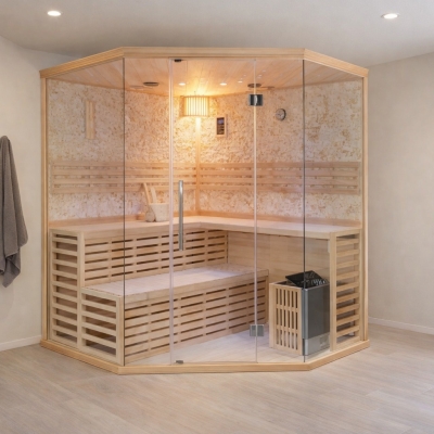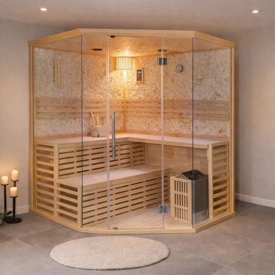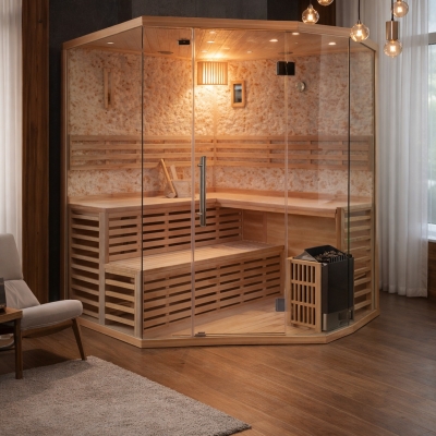 The Corner Quad stands as the pinnacle of our traditional sauna collection, offering ample space and aesthetic appeal. Its ingenious corner-friendly design ensures seamless integration into your space, enhancing both functionality and style. Designed to comfortably accommodate 4 to 5 individuals, it provides ample room for guests to stretch out and immerse in complete relaxation.
