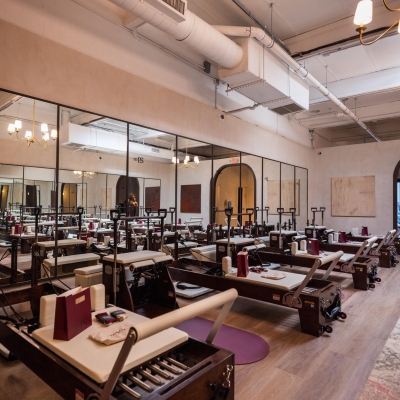 Commercial Pilates Reformer - Walnut (Cream Upholstery)