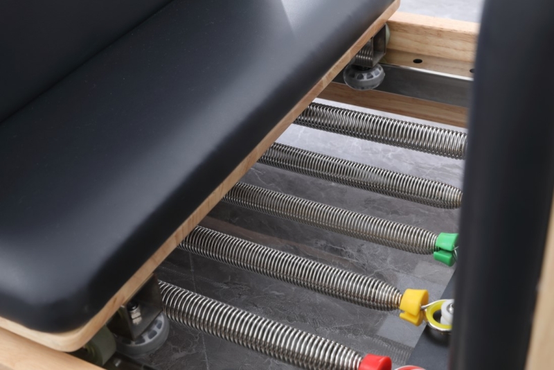 The reformer comes with five German-made piano wire springs, providing consistent and smooth resistance that’s both durable and reliable. These springs are designed to support a wide range of exercises, offering the perfect level of tension for your workout. Whether you're working on strength or flexibility, the precise performance of these springs ensures an effective Pilates routine every time.
