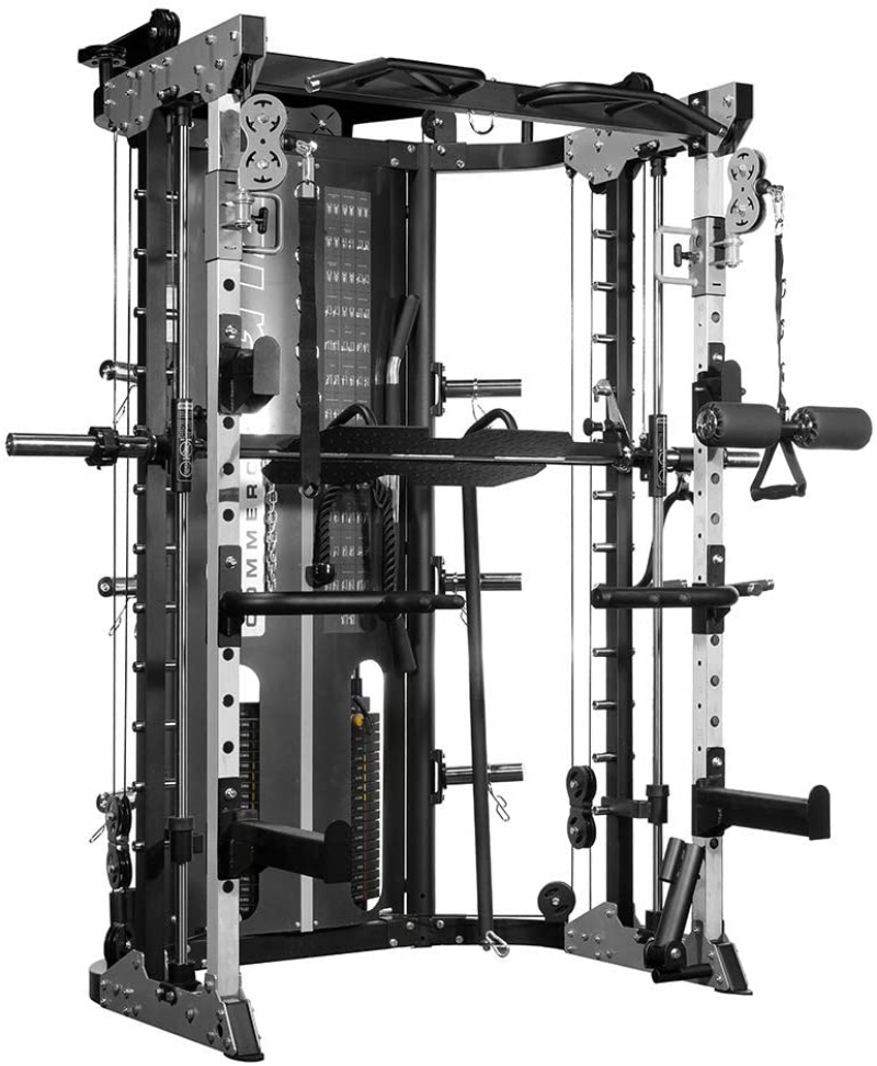 Smith Machine - Innovative counter-balanced commercial Smith Machine and commercial grade guide rails offer ultra-smooth movement. Fitted with a safe lock and release and a safety catch, you can max out your training without the need for a spotter.