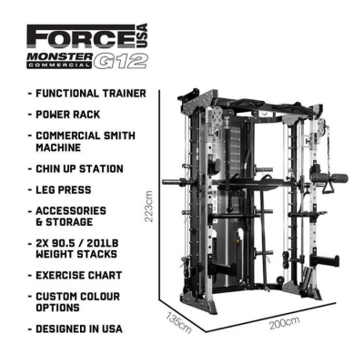 The Force USA G12 all-in-one functional trainer offers over 300 exercises in one. Engineered in the USA to be tough, sturdy, and superbly versatile, it is essentially eight different strength systems in one. The G12 is geared towards high-performance athletes, coaches, personal trainers and those who want the strength training and rehabilitation edge whilst training at home.