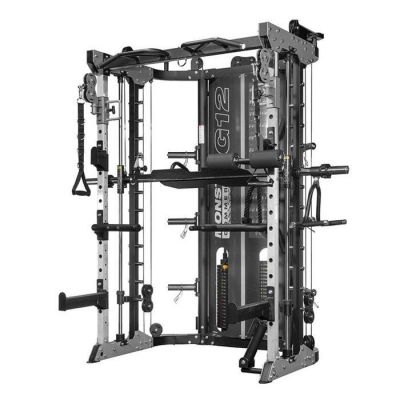 The G12 is a power rack, functional trainer, Smith Machine, dip station, chin-up station, leg press, core trainer, suspension trainer and low row combined into one compact multi-station machine.
