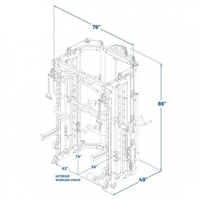 Minimum room width: 223cm to allow for loading of the Smith Machine (88 inches)