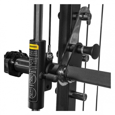 Functional Trainer - Dual cable pulley system connects to their respective 201 lbs weight stacks. Cables are aircraft grade with a massive 2000 lbs weight rating. Pulley systems are easily adjusted vertically on the structure with just one hand.