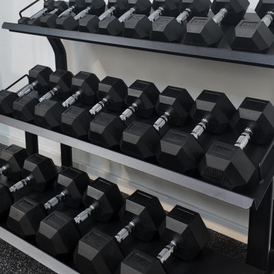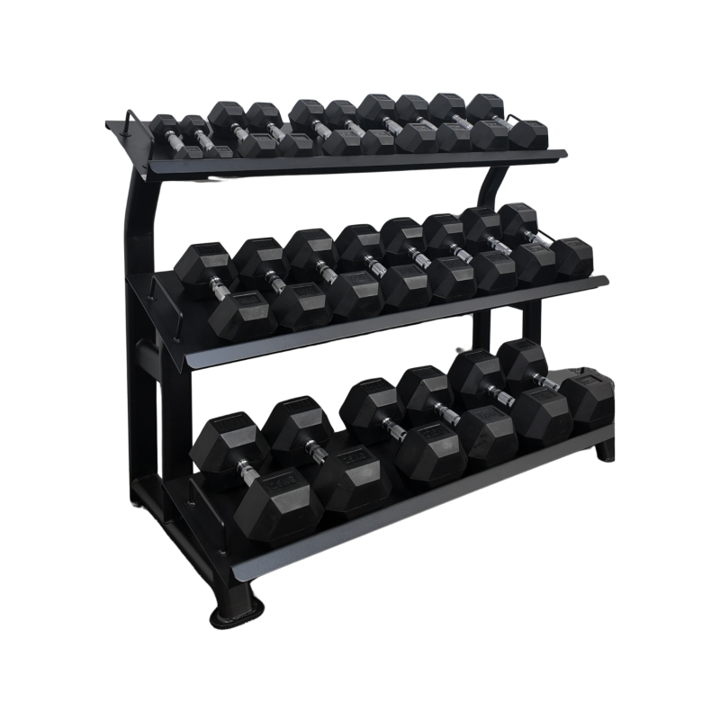 Designed to hold a full set of hex dumbbells up to 30kg, this premium three-tier rack combines strength, stability, and smart design. The heavy-duty flat trays provide secure storage, keeping your weights neatly in place and easy to access during workouts.