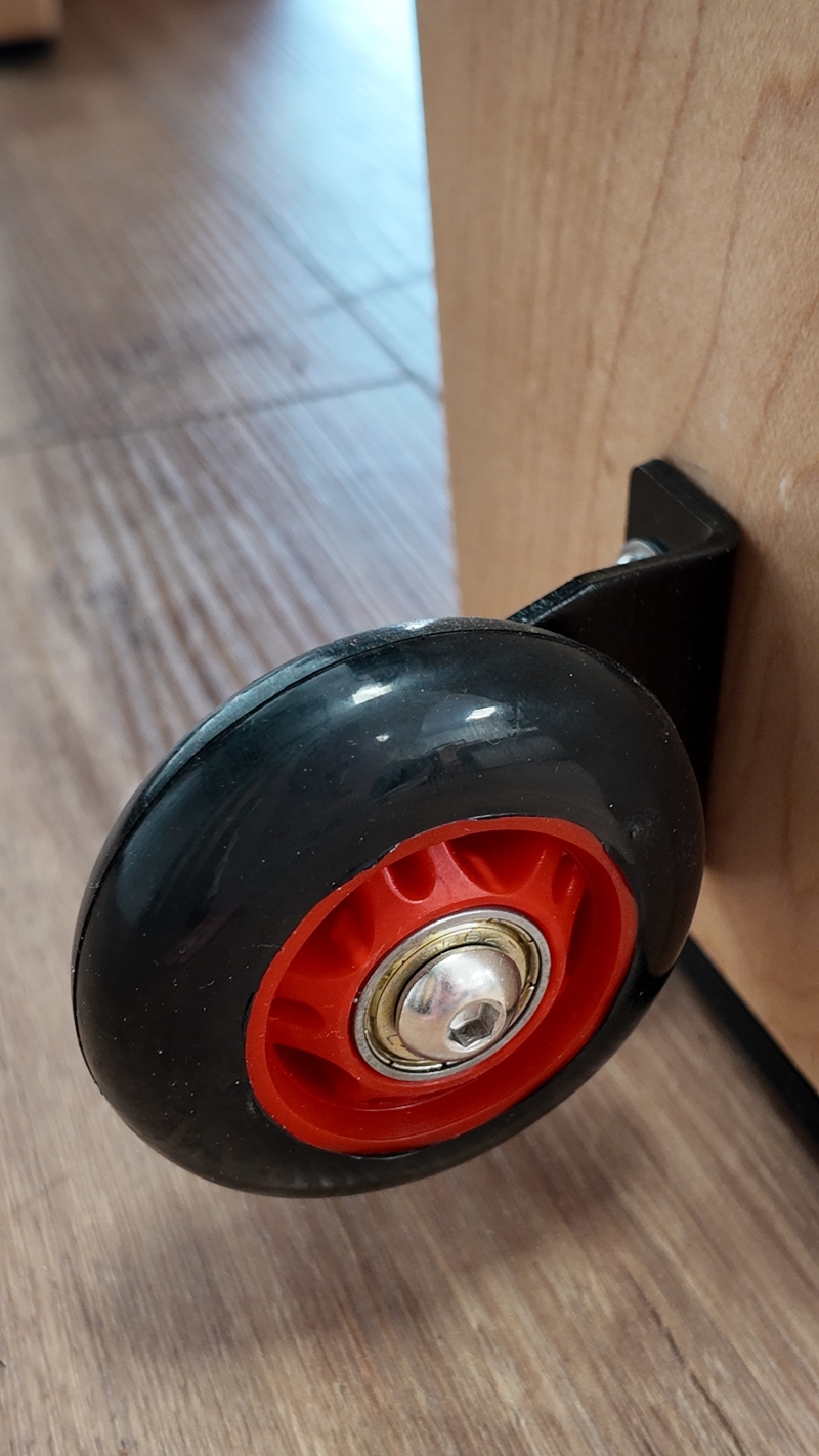 - Four horizontal roller wheels deliver a quiet, stable, and exceptionally smooth glide