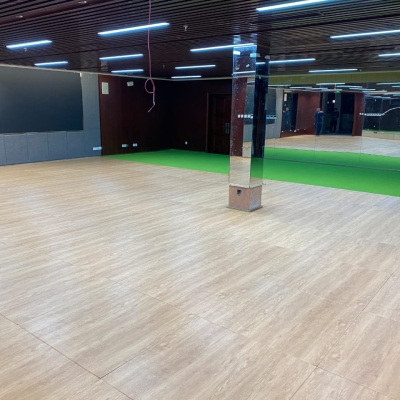 Manufactured with a high-density SBR rubber base and finished with a durable 2mm wood-effect top layer, it offers excellent impact absorption while maintaining a premium appearance. Easy to clean and low maintenance, the surface can be quickly wiped down to restore its appearance, making it a practical and reliable choice for high-traffic fitness spaces.