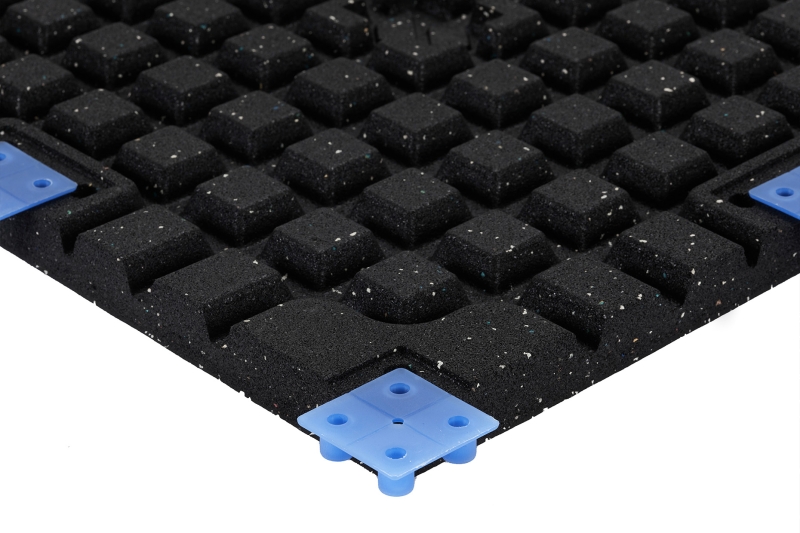 The Stockz patented impact bottom is specifically designed for optimal shock absorption and the reduction of impact sound. The structured pattern on the underside of the tile incorporates integrated connection holes for the connector system.
