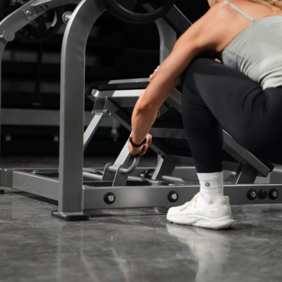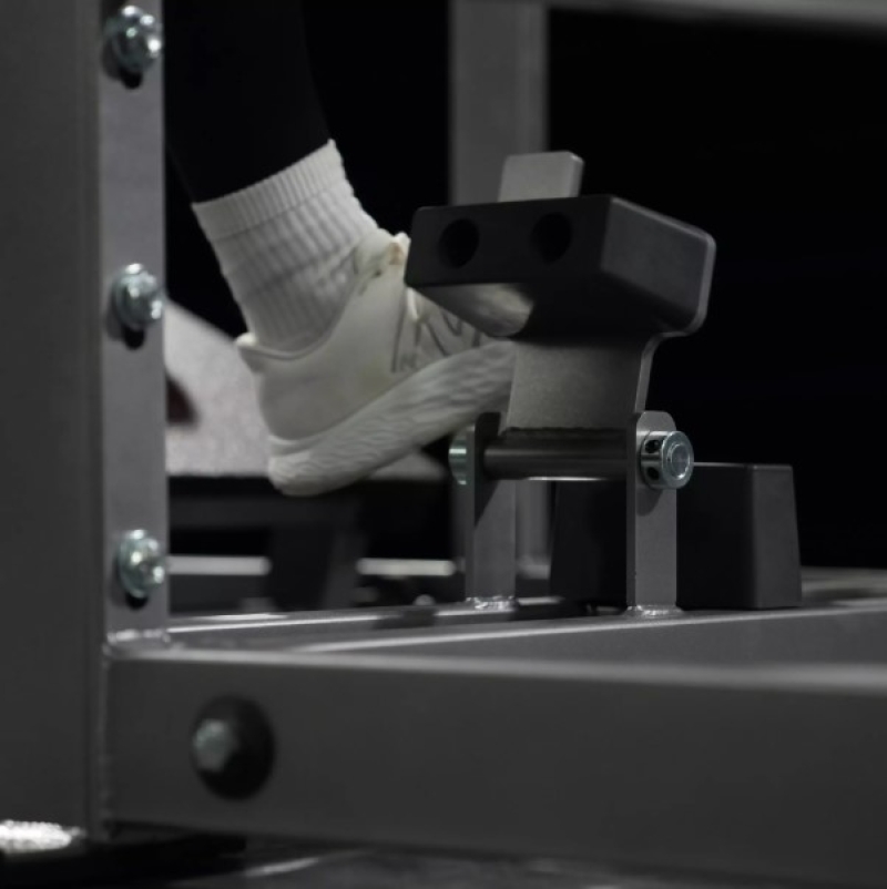 - The Range of Motion Adjustment offers effortless control to deepen your squat through a simple foot-operated flip. Engineered for ease of use, this feature enables quick modifications to your squat depth, supporting enhanced muscle activation or customization for targeted training objectives. It provides seamless versatility, allowing you to adapt your movement without breaking your rhythm.
