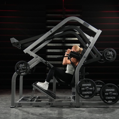 The Hammer Strength Plate Loaded Pendulum-X Squat is built for athletes and serious lifters who demand more from their lower-body training. Unlike traditional pendulum squats that restrict hip extension and place excess stress on the knees, the Pendulum-X promotes full-body extension to deliver exceptional power and performance.