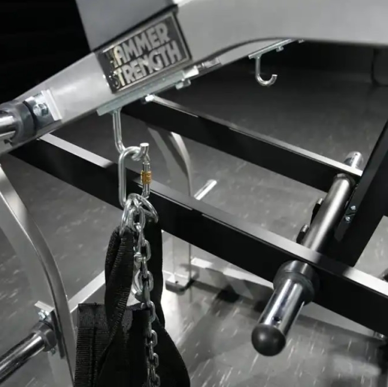 - Multiple Anchoring Points: Our Hammer Strength Belt Squat is equipped with four belt anchoring points, providing athletes with the flexibility to adjust the loading mechanics of their squat. By hooking the belt closer to the weight, the perceived resistance increases, resulting in a heavier and more intense squat. Conversely, anchoring the belt farther away reduces the load, allowing for a greater range of motion and more explosive movements.