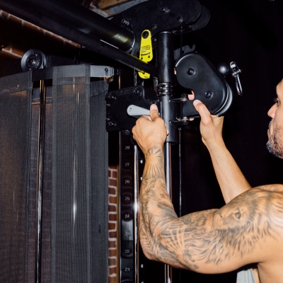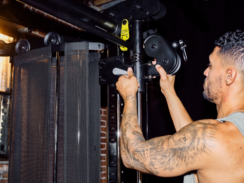Centr’s patented Smith bar design lets you adjust resistance with a single, quick pin release. Move efficiently through every workout—no more changing, storing, or dropping plates.