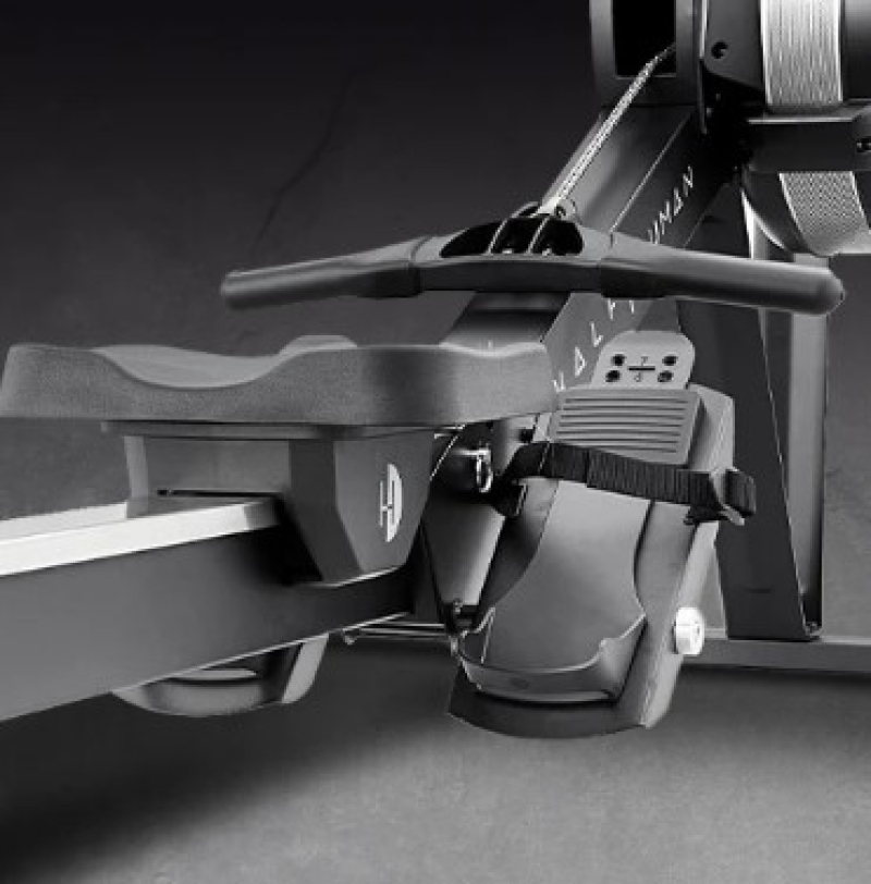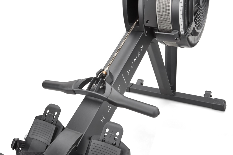 Improve your cardio, strength, and endurance with the Half Human air rowing machine. This sturdy, commercial-grade rower features 10 levels of air resistance to let you adjust intensity of each workout and deliver smooth rowing experience and a natural feel. Featuring a smart device holder and Bluetooth connectivity, the rower allows for maximising results while training with D-fit and Kinomap apps. Enjoy structured workouts with coaching and interval training, row all over the world, join multiplayer sessions to compete with friends and get accurate motion recording and exercise analysis. Check your progress on an easy-to-read 5” LCD display and choose from 8 onboard workouts designed to help you hit the target faster. Train in comfort with a large, padded seat and adjustable footrests.