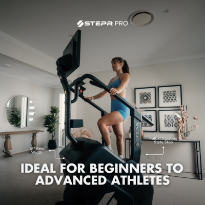 The STEPR PRO is the Ultimate Stair Climbing Solution. With a larger PRO 7" Floating Step height, enhanced surface area to accommodate any foot size. Up to 190 Steps per minute (SPM) to allow for advanced HIIT training and overbuild commercial grade frame and hardware. Also offers a home & light-commercial warranty.