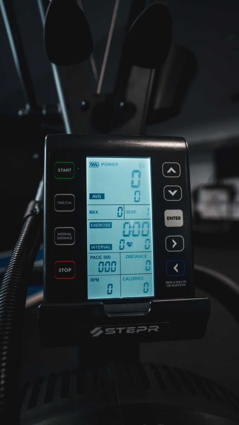 Track every metric that matters with a backlit performance console. Stay on top of your progress with real-time data including time, distance, pace, watts, calories, and heart rate. Easy to read in any lighting condition, whether you're training solo or in a darkened studio.