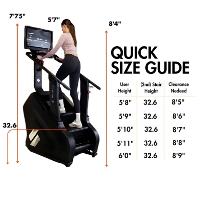 - STEPR XL+ Core Features (LxWxH): 53" x 32.87" x 92.91"