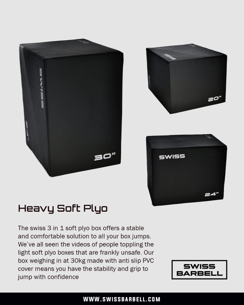 The swiss 3 in 1 soft plyo box offers a stable and comfortable solution to all your box jumps. We’ve all seen the videos of people toppling the light soft plyo boxes that are frankly unsafe. Our box weighing in at 30kg made with anti slip PVC cover means you have the stability and grip to jump with confidence.