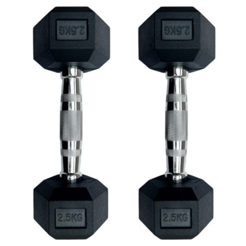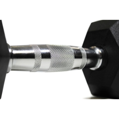 Complete with chrome contoured, knurled handles, these dumbbells offer superior grip during even the sweatiest of workouts. The Swiss Barbell rubber hex dumbbells are imprinted with the weight on one end for quick and easy identification.