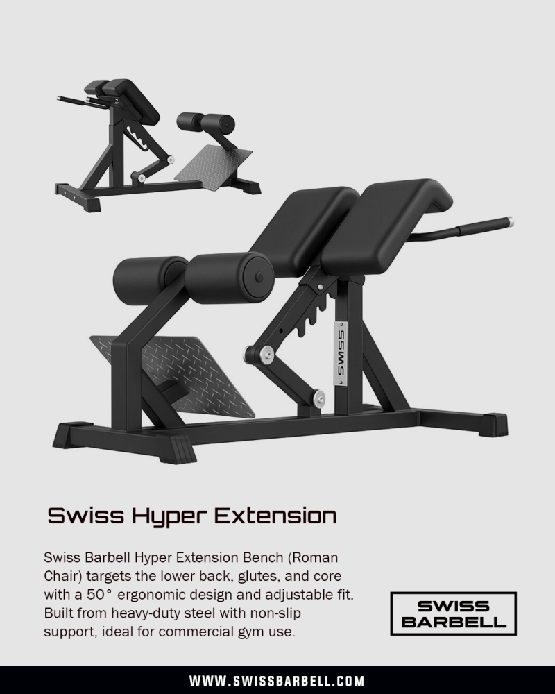 Engineered for performance and durability, the Swiss Barbell Hyper Extension Bench—commonly known as the Roman Chair—is designed to effectively target the lower back, glutes, hamstrings, and core. The split-angle support pad promotes correct spinal alignment while reducing pressure on the pelvis, making each rep comfortable and efficient.
