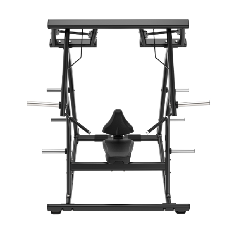 Each converging lever arm works independently to achieve better muscle isolation and contraction. Load this professional machine with Olympic weight plates and store them on the convenient weight storage posts located on each side of the frame when not in use.