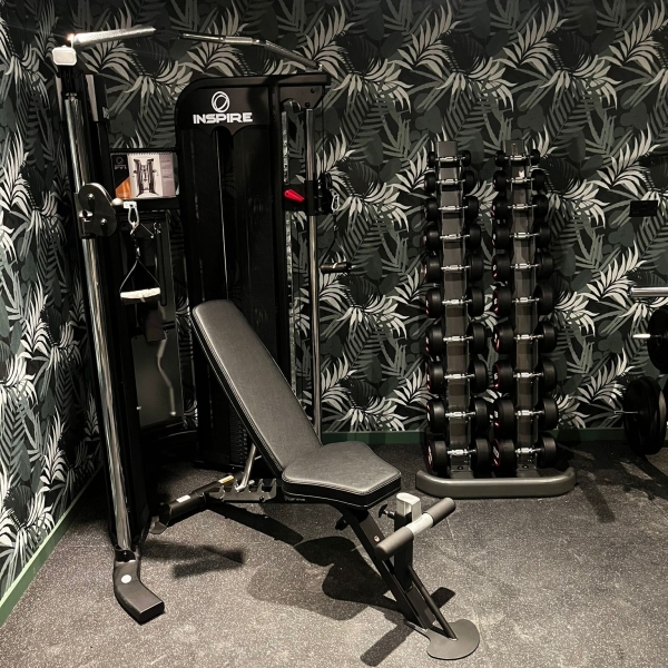 The centrepiece of the gym, the Inspire FT1, offers outstanding versatility. With dual adjustable pulleys, smooth movement, and a range of attachments, it allows users to perform hundreds of exercises, from strength training to mobility work.