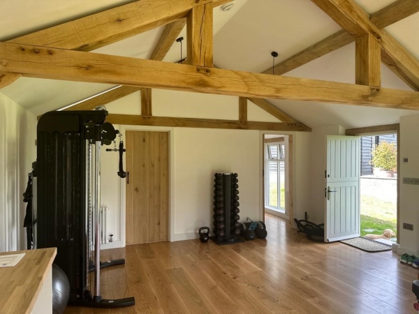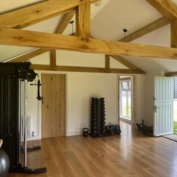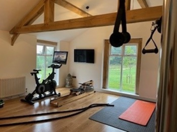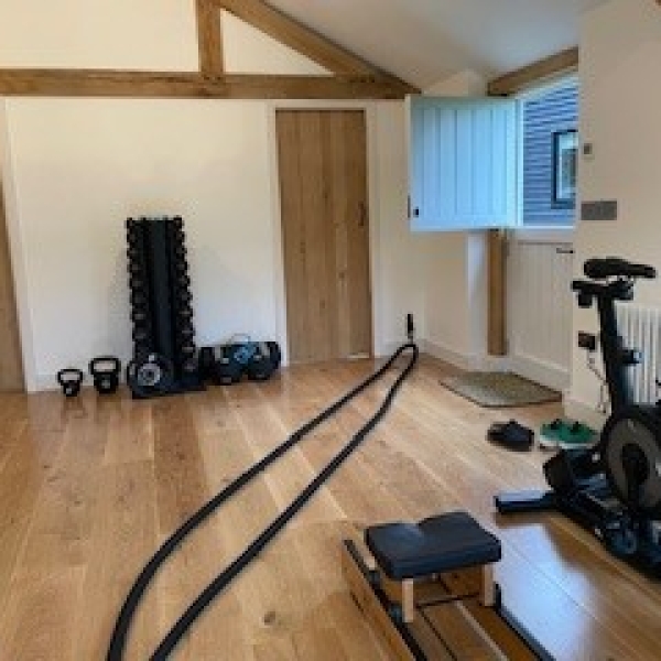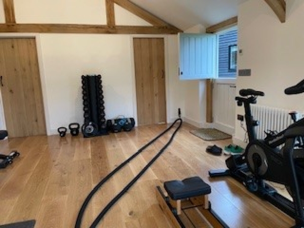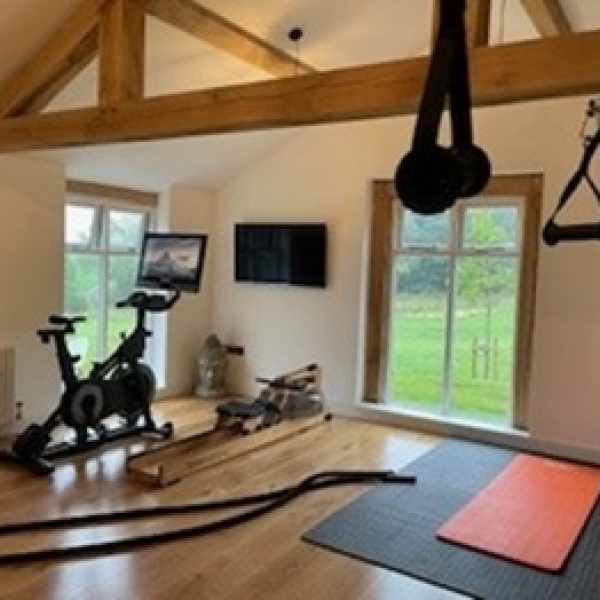 The brief was to design and install a home gym that supported both strength and cardio training, without compromising on aesthetics. Our team planned a clean, open layout that highlighted the building’s natural features — including exposed oak beams, wooden flooring, and large doors that fill the space with light and countryside views. The result is a calm, motivating environment that feels connected to nature while being equipped for serious workouts.